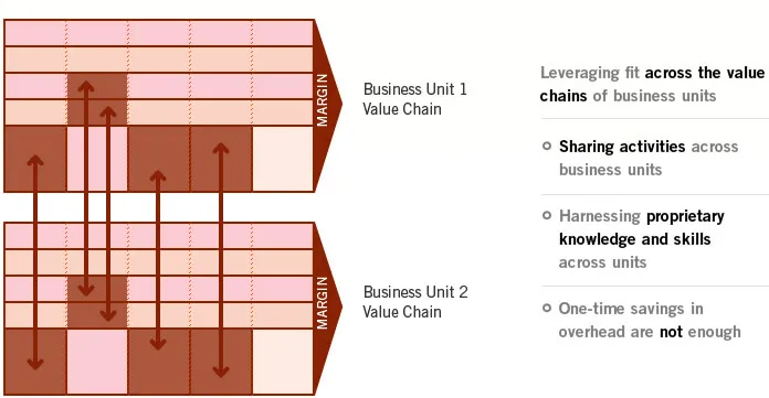 In diversified companies, corporate leaders can enhance competitive advantage by capturing synergies and harnessing fit across the value chains of business units within the corporate portfolio.